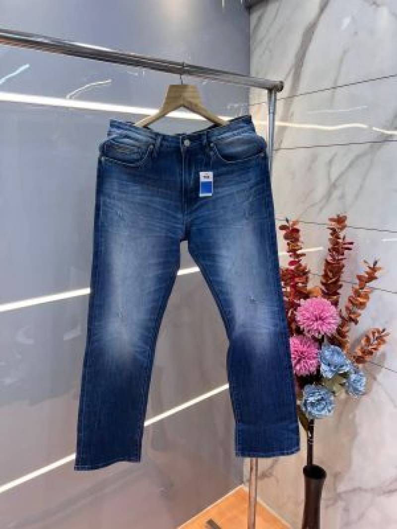 Balenciag a Blue Shade Premium Imported Stretchable Lycra Fabric Straight Fit Denim with Embroidered Logo 3074