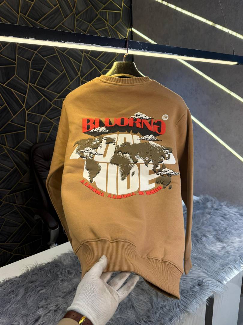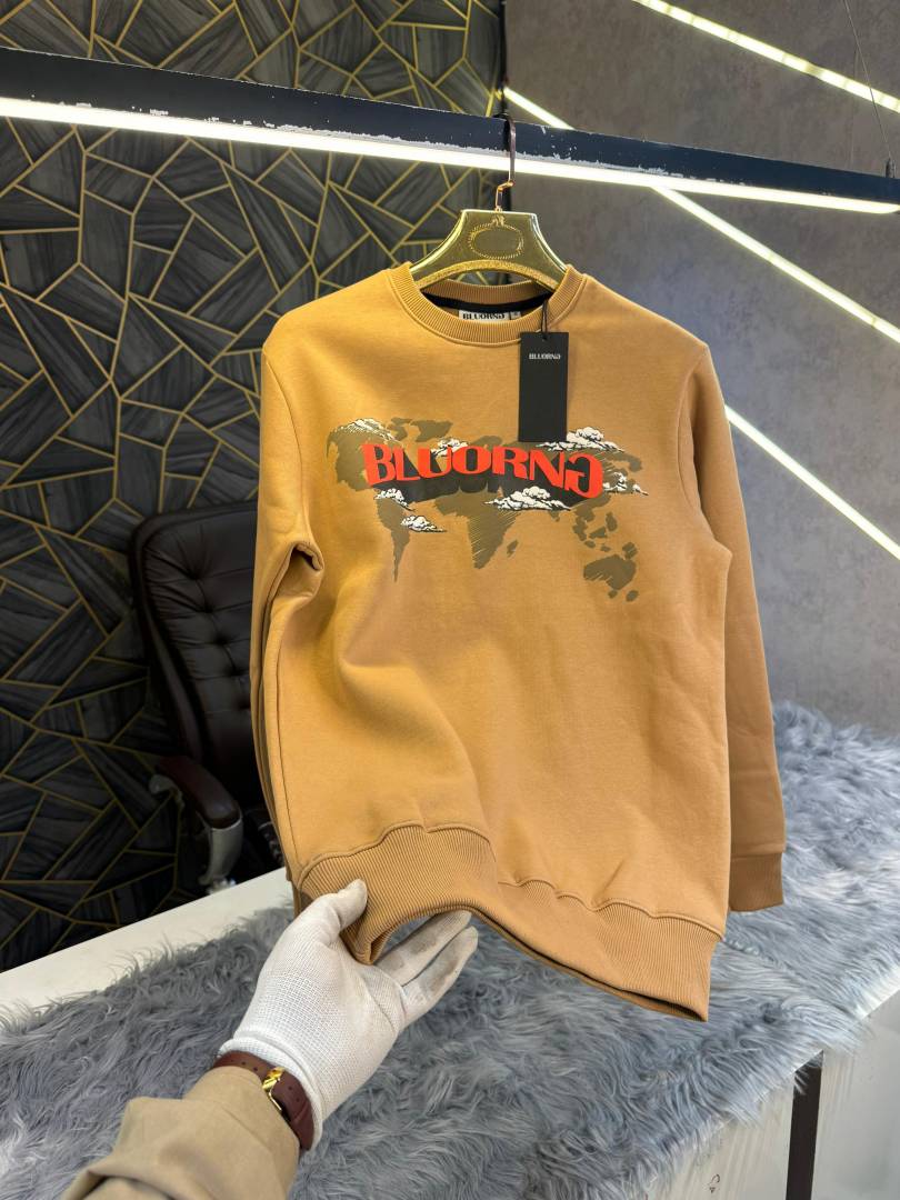 Bluorng Brown Embossed Logo Print Imported Sweatshirt (1944)