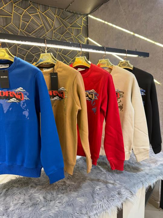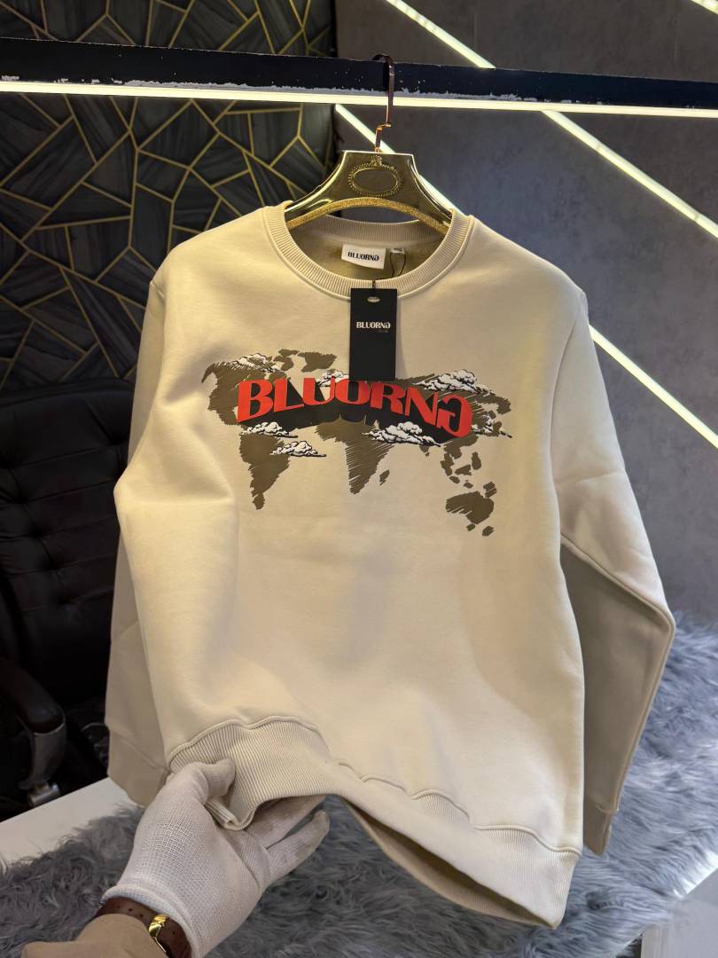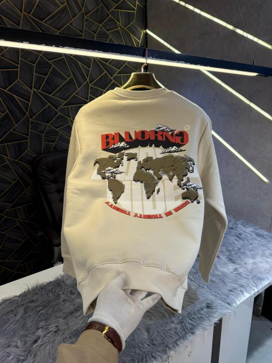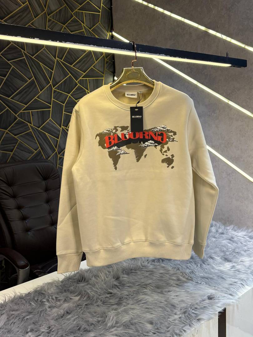Bluorng Cream Embossed Logo Print Imported Sweatshirt (1943)