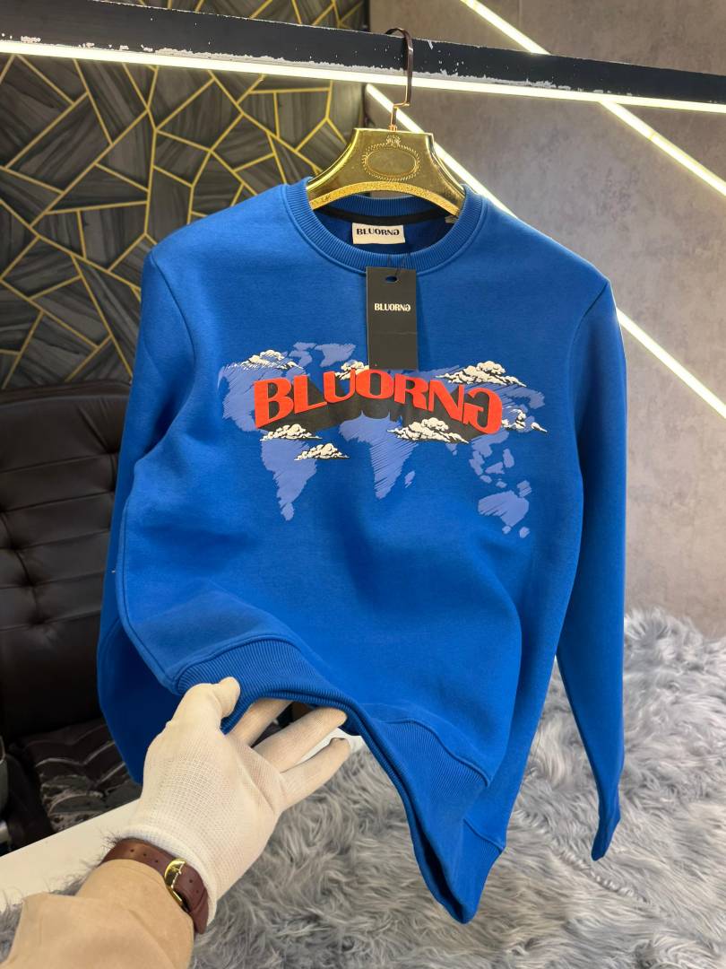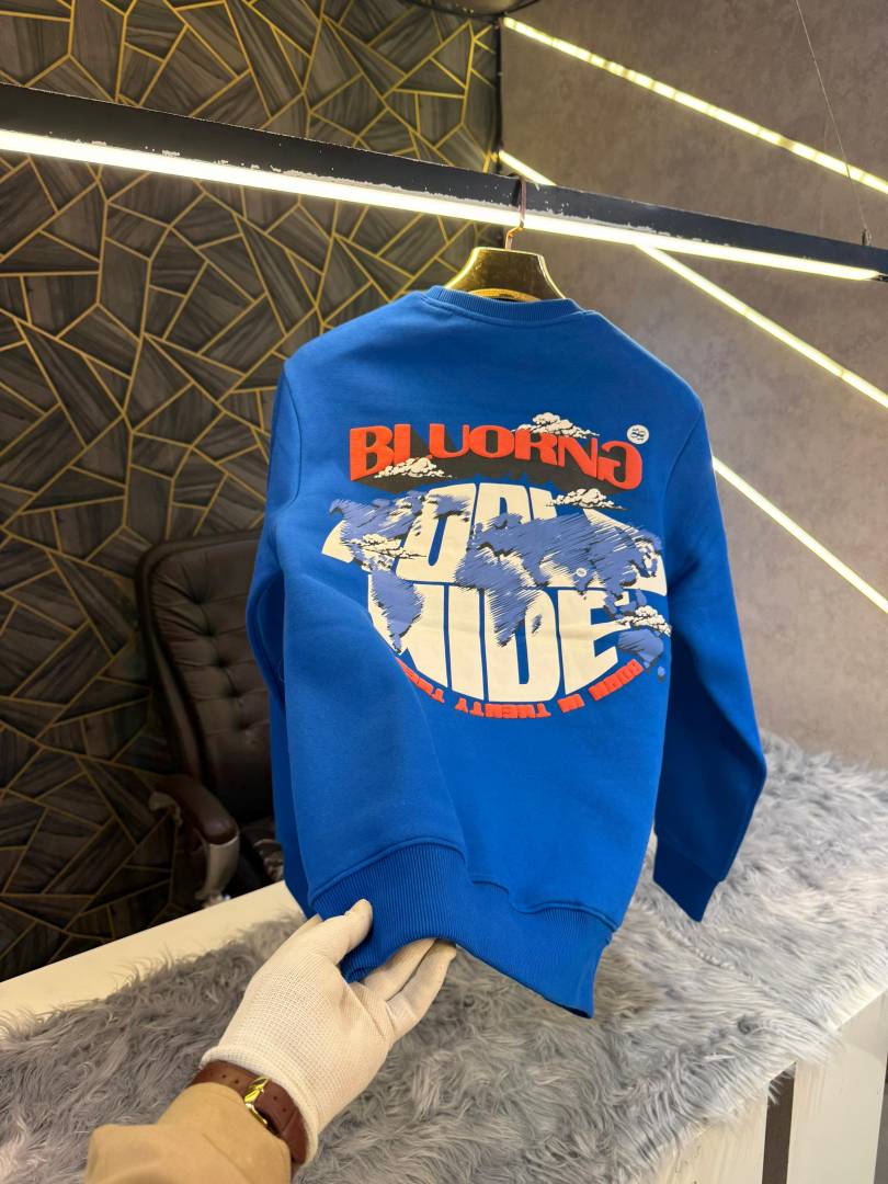 Bluorng Royal Blue Embossed Logo Print Imported Sweatshirt (1942)