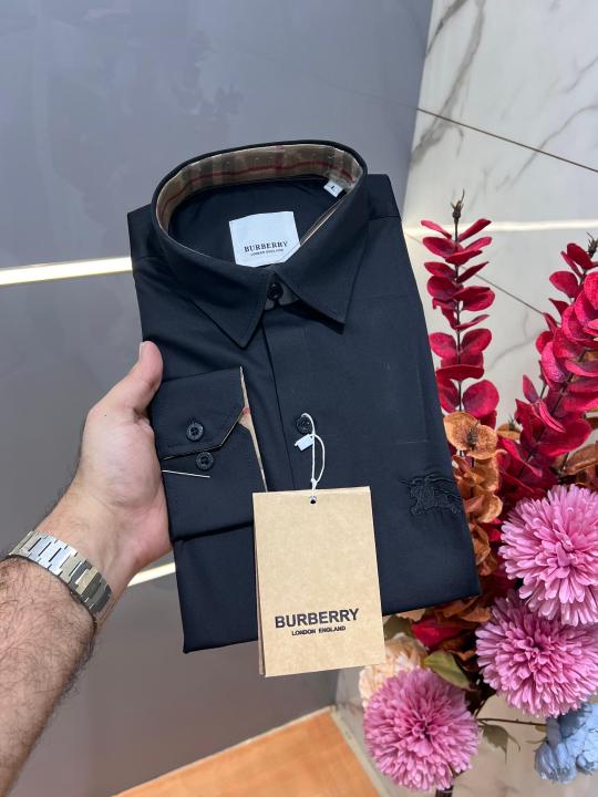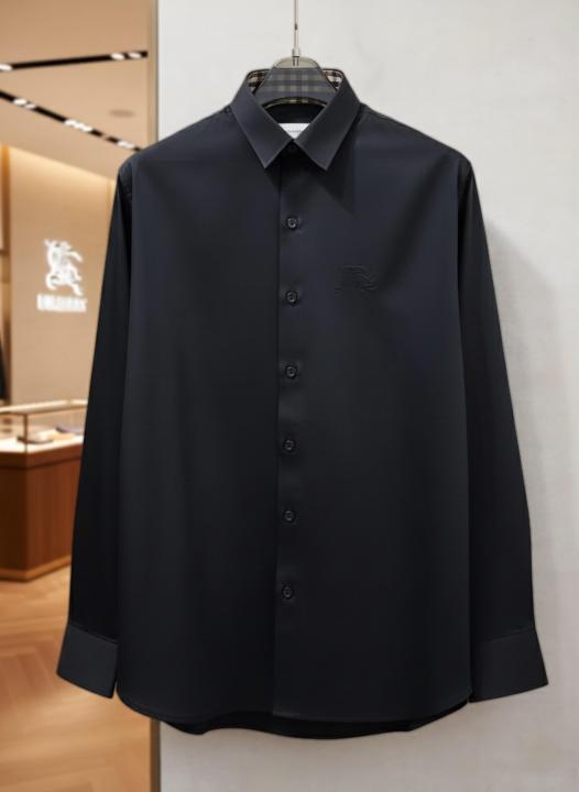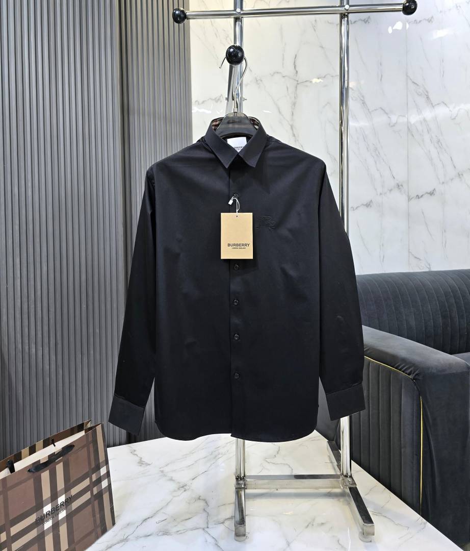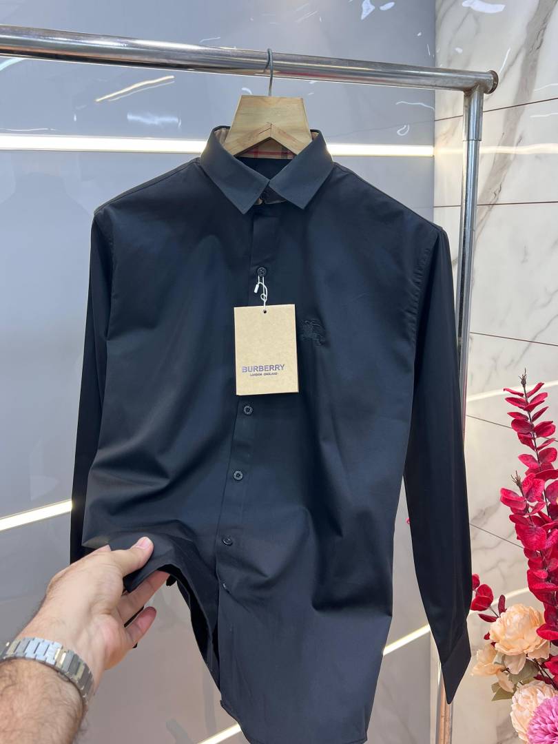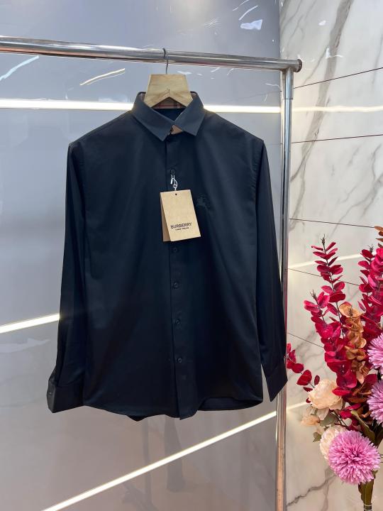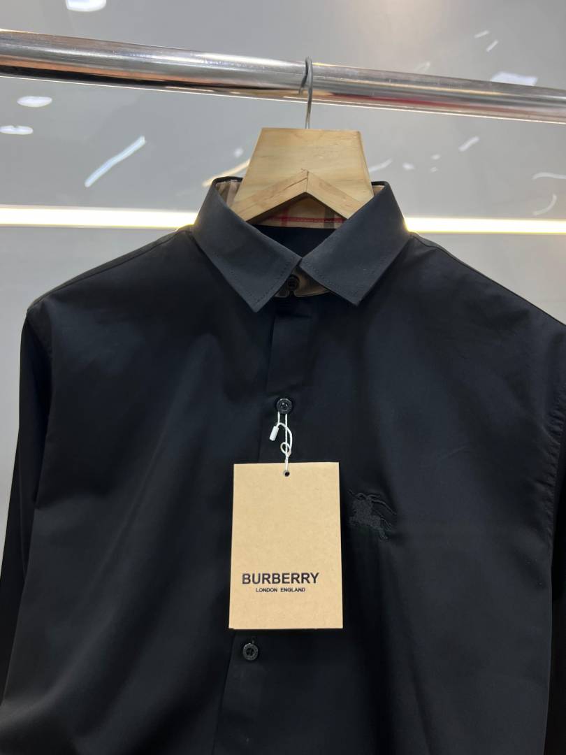 Burberr y Black Premium Embroidered Logo Cotton Lycra Fabric Shirt With custom Branded Button Tagging And Brand Packing 3414