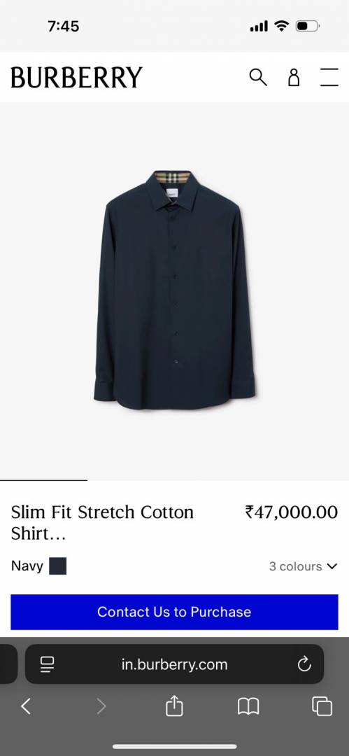Burberr y Grey Premium Embroidered Logo Cotton Lycra Fabric Shirt With custom Branded Button Tagging And Brand Packing 3410