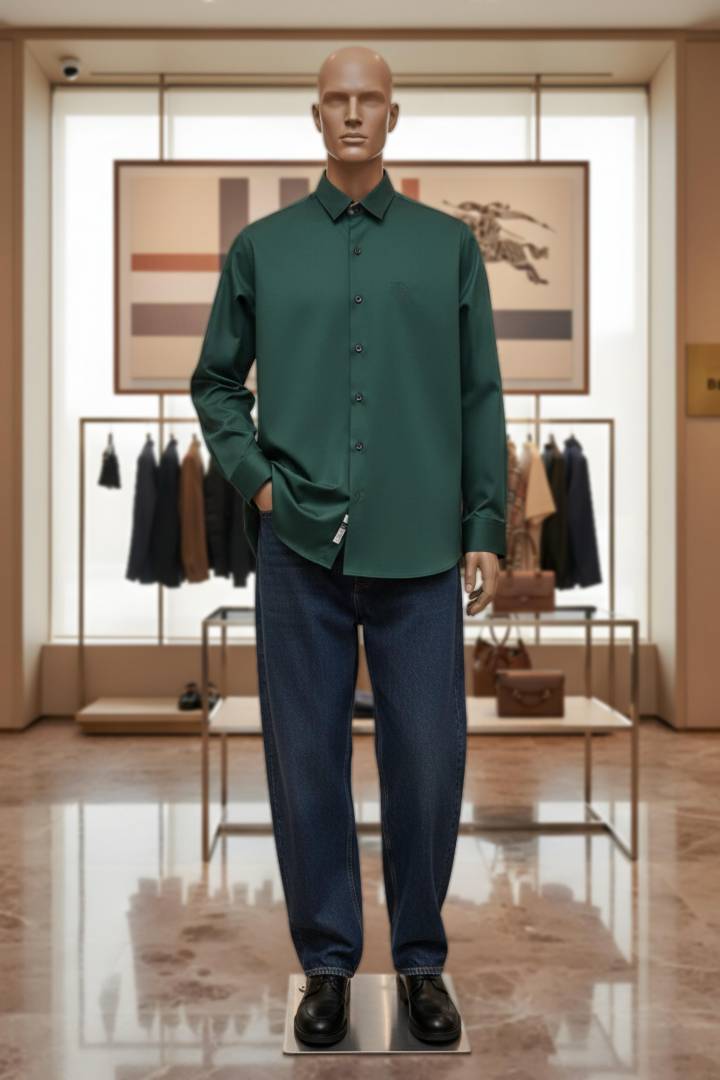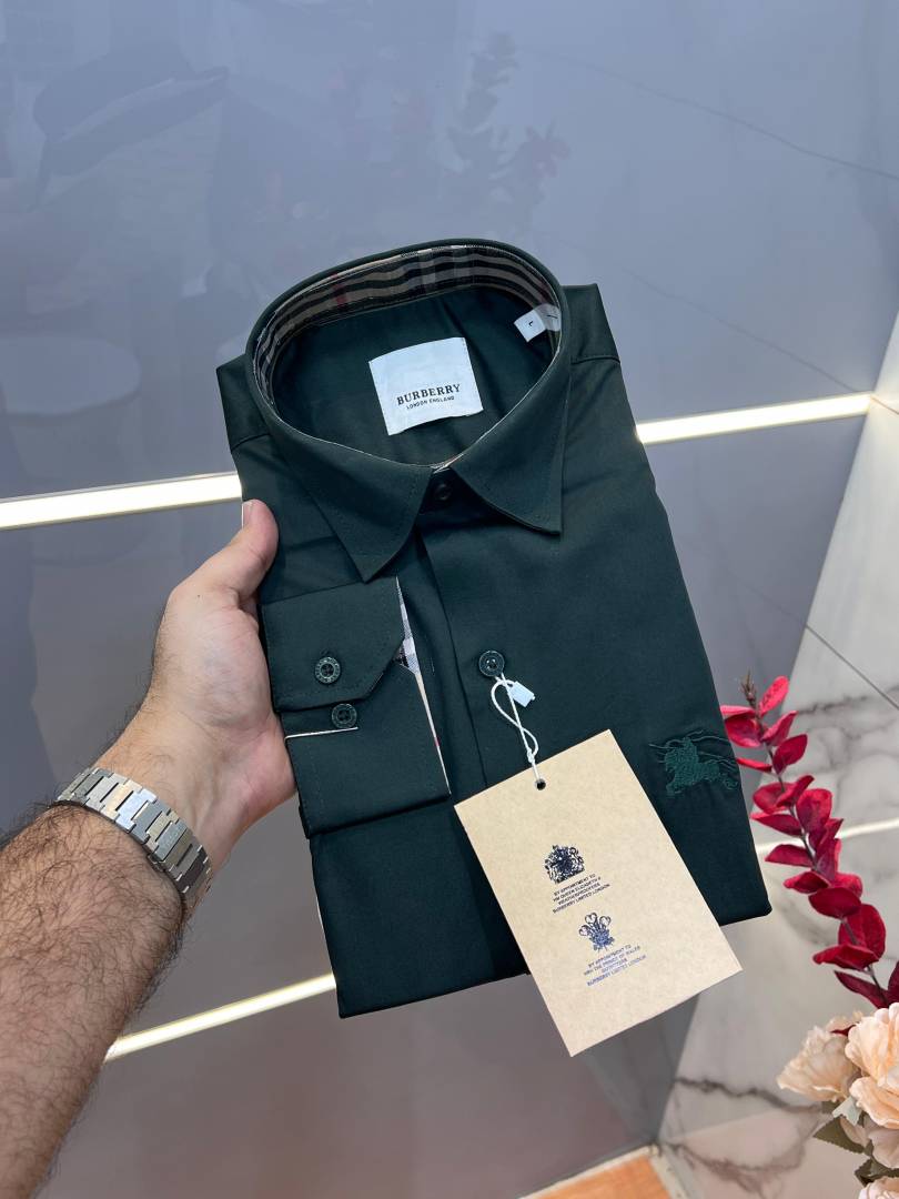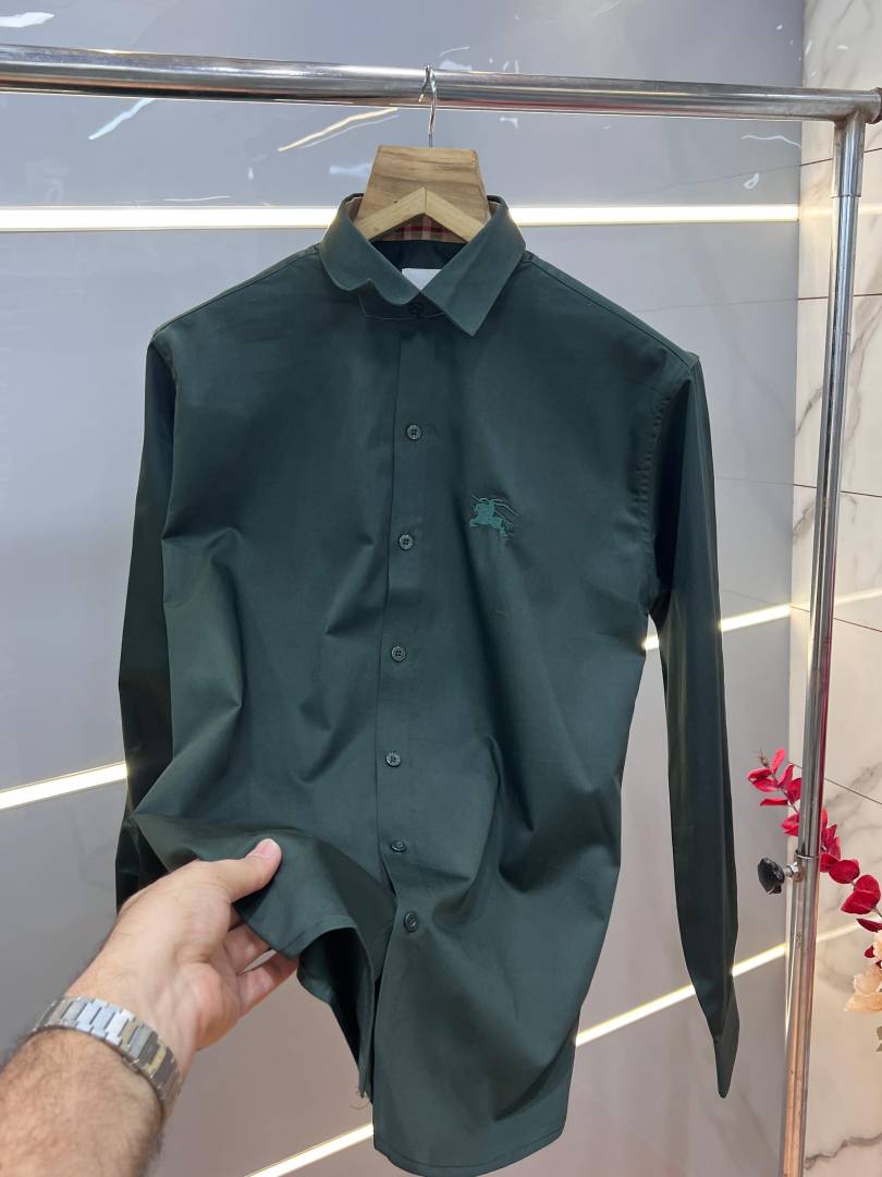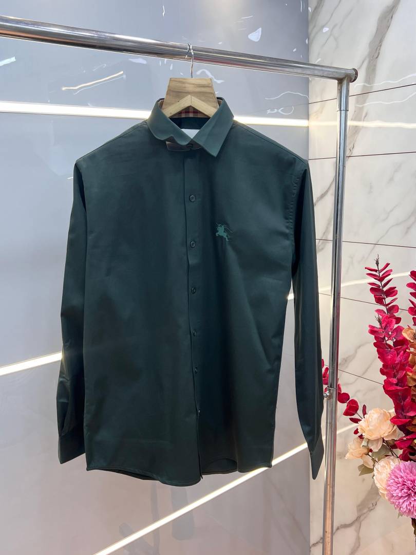 Burberr y Green Premium Embroidered Logo Cotton Lycra Fabric Shirt With custom Branded Button Tagging And Brand Packing 3413