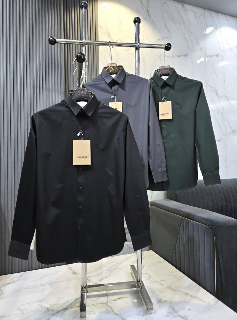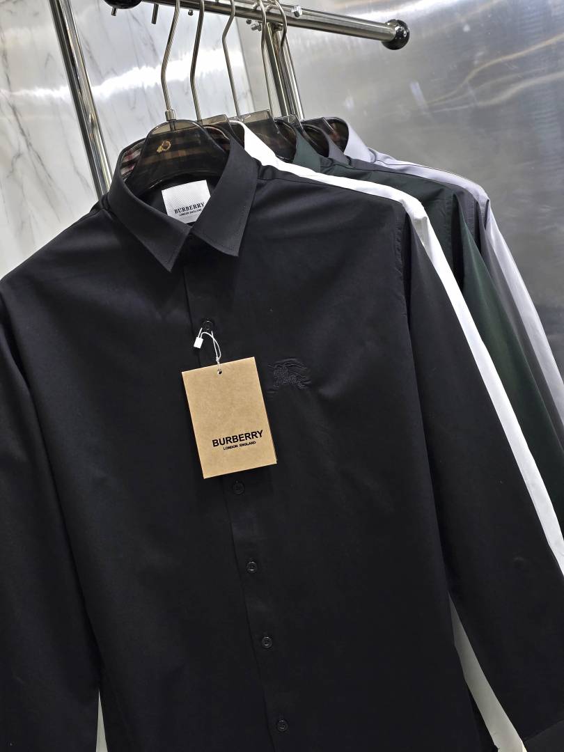 Burberr y Black Premium Embroidered Logo Cotton Lycra Fabric Shirt With custom Branded Button Tagging And Brand Packing 3414