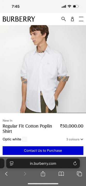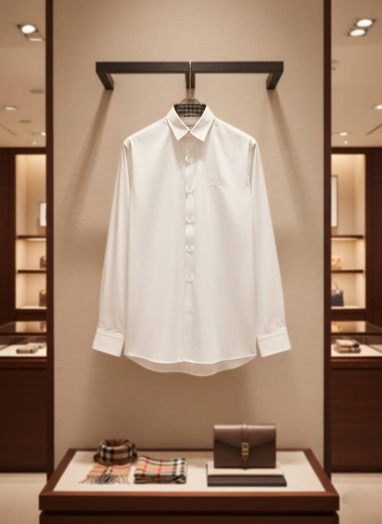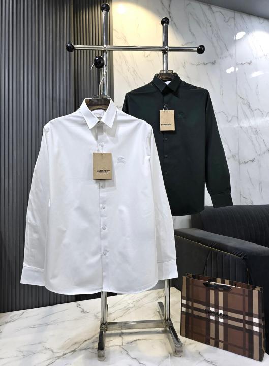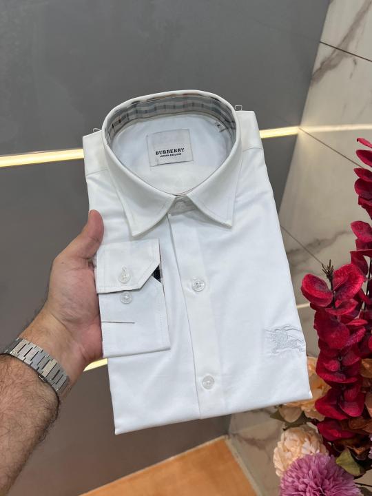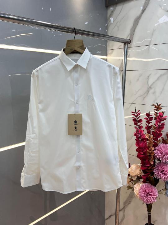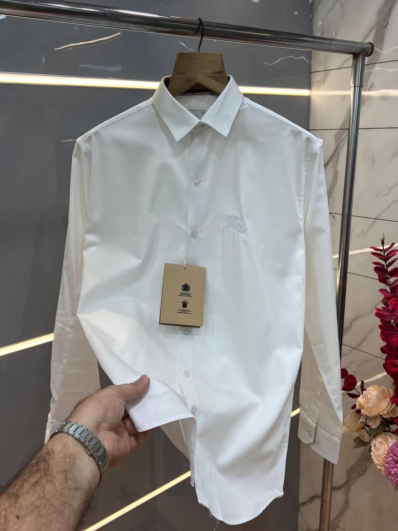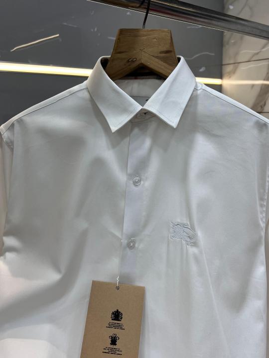 Burberr y White Premium Embroidered Logo Cotton Lycra Fabric Shirt With custom Branded Button Tagging And Brand Packing 3411