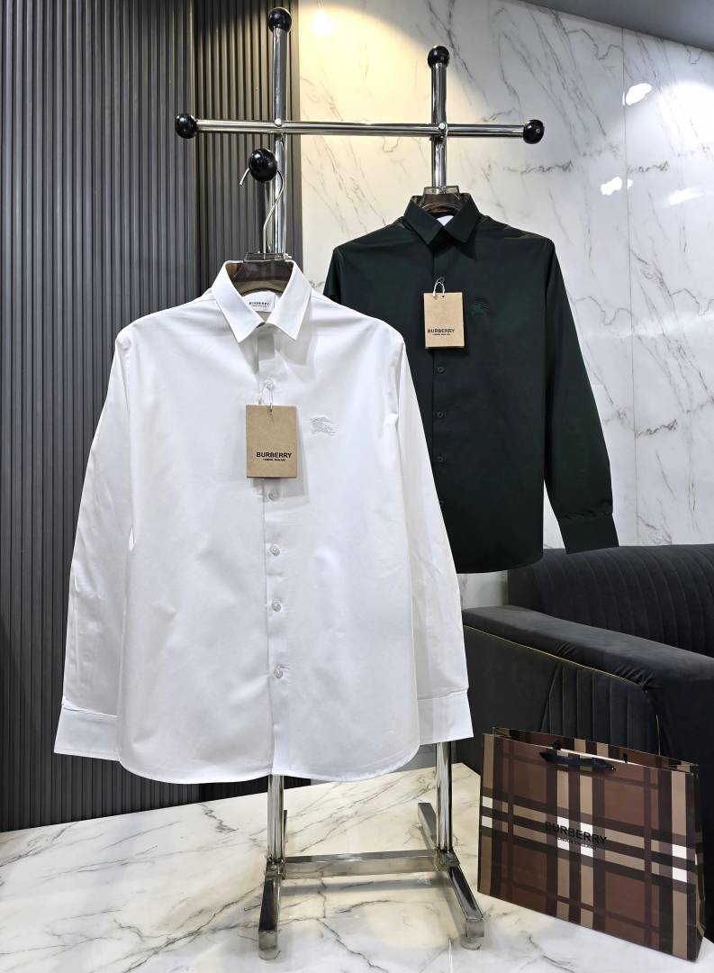 Burberr y Black Premium Embroidered Logo Cotton Lycra Fabric Shirt With custom Branded Button Tagging And Brand Packing 3414