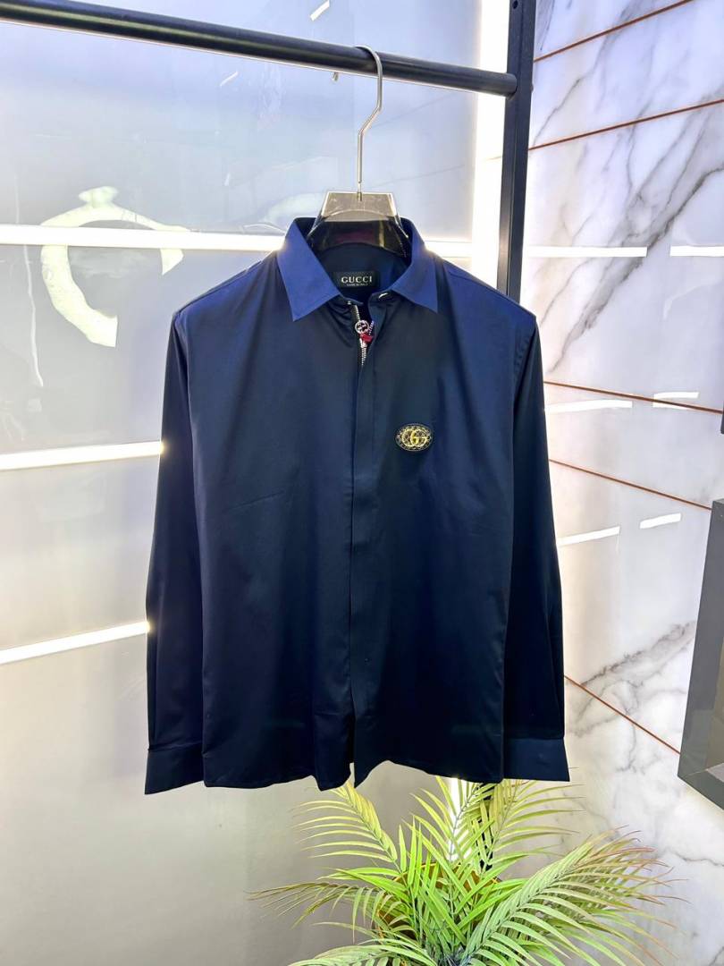 Gucc i Metal Logo Imported Navy Super Premium Zipper Shirt F3225-NY