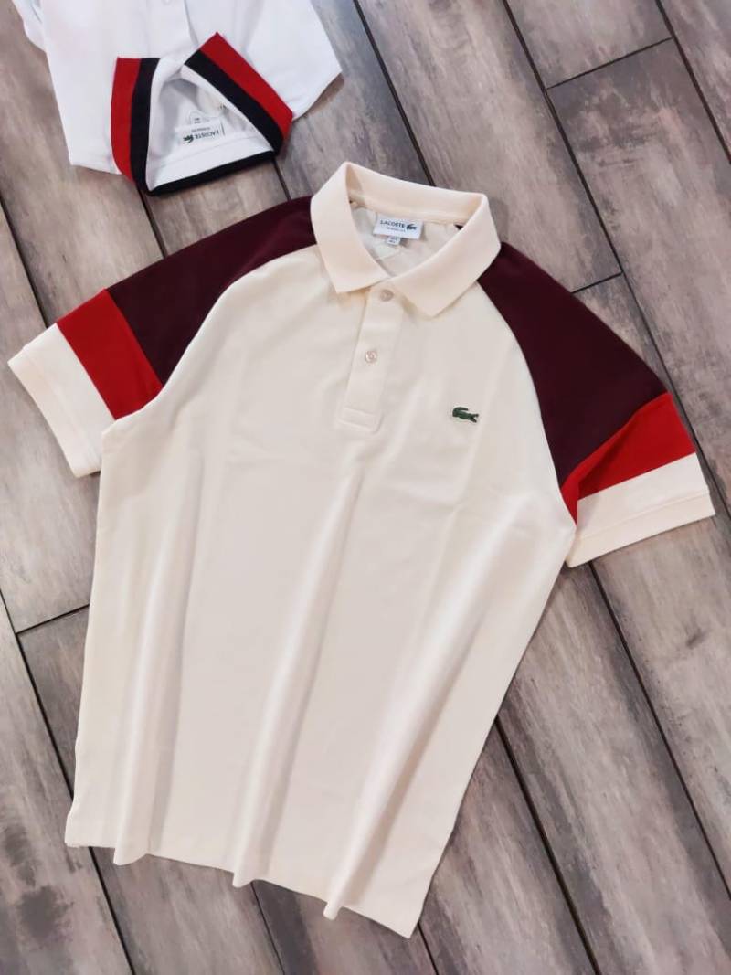Lacost e Cream Polo Premium Collar Neck T-shirt F3586-CR1