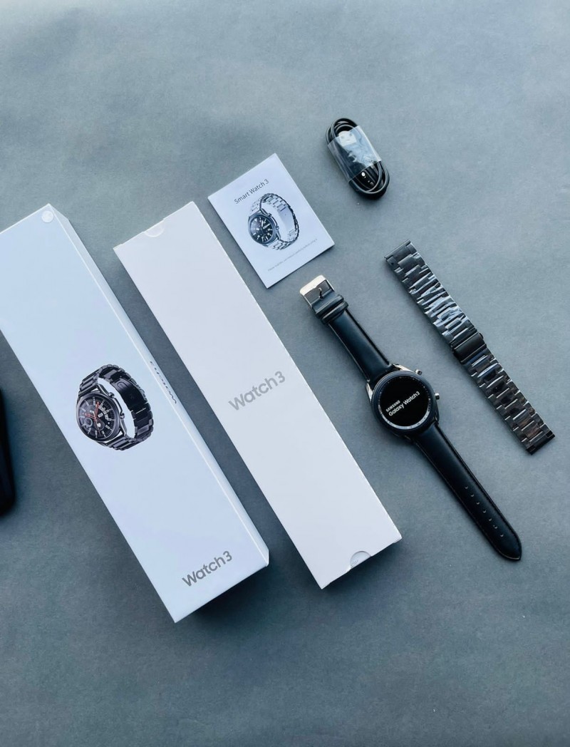 ???? *SAMSUNG GALAXY WATCH 3* ???? ???? *SAMSUNG GALAXY WATCH 3 LOGO APPEARS WHEN POWER ON/OFF*???? *The Main Features Of Smart Watch*???? ?? *Rotate the Distinctive Steel Bezel to Easily Access apps and Notifications*? ?? *SIRI / GOOGLE ASSISTANT* Working; *Can listen and follow your commands*? ?? *Access the apps you use every day on your GALAXY WATCH 3*? ??Make it your own by *Customizing your Watch Face* and swapping out the standard 22mm band? ?? *Samsung GALAXY WATCH 3 is Compatible with both Android and iOS Smartphones*? ?? *Dual Bluetooth Connectivity v4.2 / 3.0*? ?? *1.4" HD IPS Screen* With 300Nits Brightness? ?? *Aluminium* Alloy / ABS Built Quality? ?? *Heart Sensor With 24/7 Monitoring* / *Blood Pressure* / Heart Beat Pulse Count? ?? *BT Calling / BT Music / BT Camera / Phone Book / Call Log*? ?? *Anti Lost* / Vibration Alert?