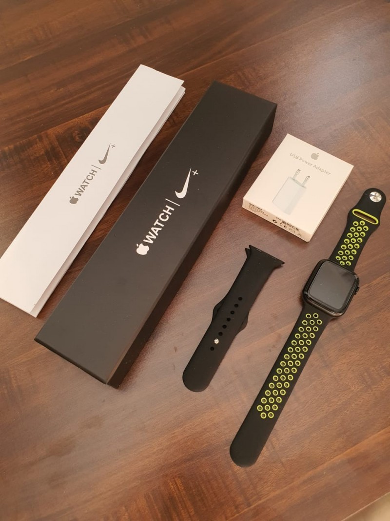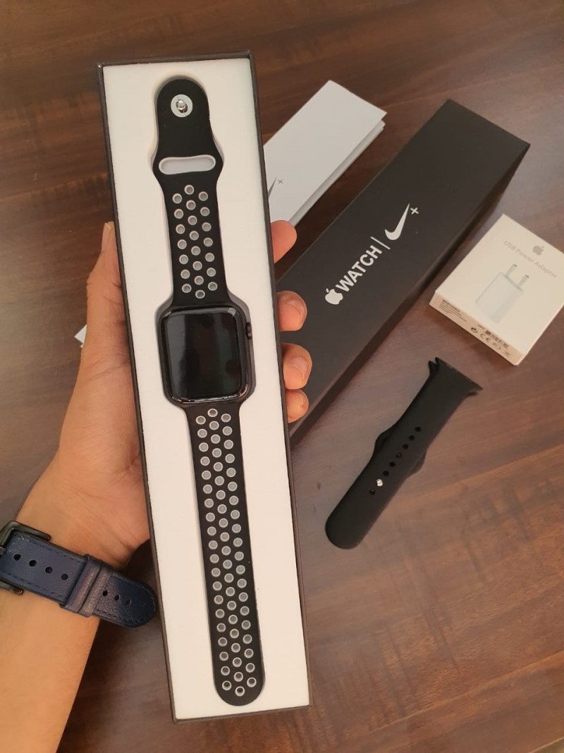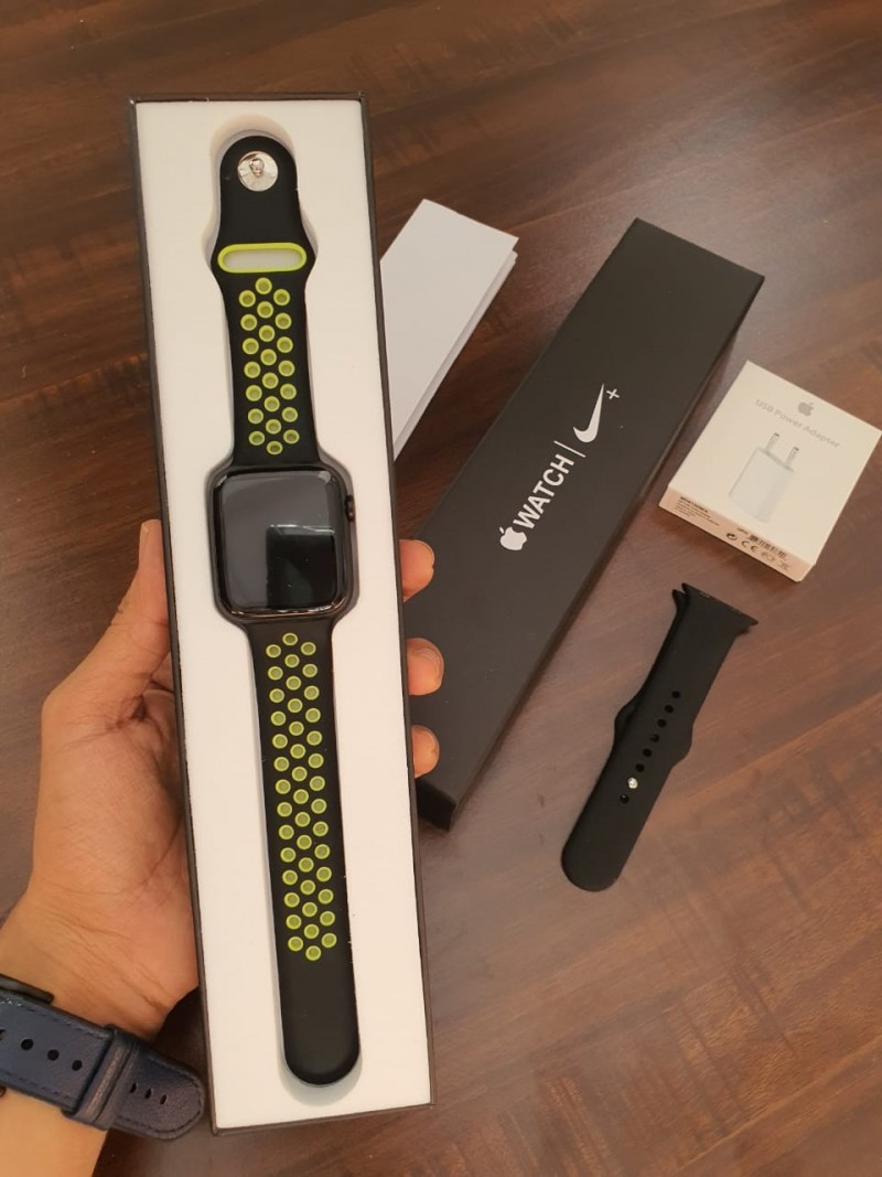 *Apple Watch Series 6 44mm 2020 with Full Screen and Changeble Starp*???????? ???? *NIKE EDITION WATCH* ???? *LIMITED EDITION*???? ?? *Crown Working*???? ?? Dual Bluetooth 5.0/ watch 6_LE? ( Low Power Efficiency )? ?? *FULL SCREEN* " IPS HD Retina Clear View Display* With *Scratch Resistant* Glass Protection???? *Aluminum Built Case*?? ?? *12 Watch Faces* For Unique Style? ?? *Dial* Bluetooth call via Mobile Phone? ?? *Heart Sensor* With Real Time Analysis / Blood Pressure Monitor / Blood Oxygen Monit? ?? *Sportz Mode* With 'N' ???? Of Sport Activities For Accurate Calorie Count With Real Time Heart Rate Monitor? ?? *BT Calling*?