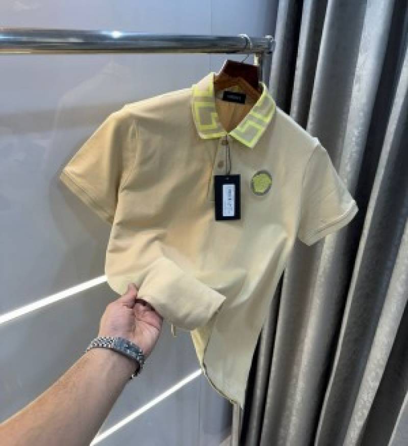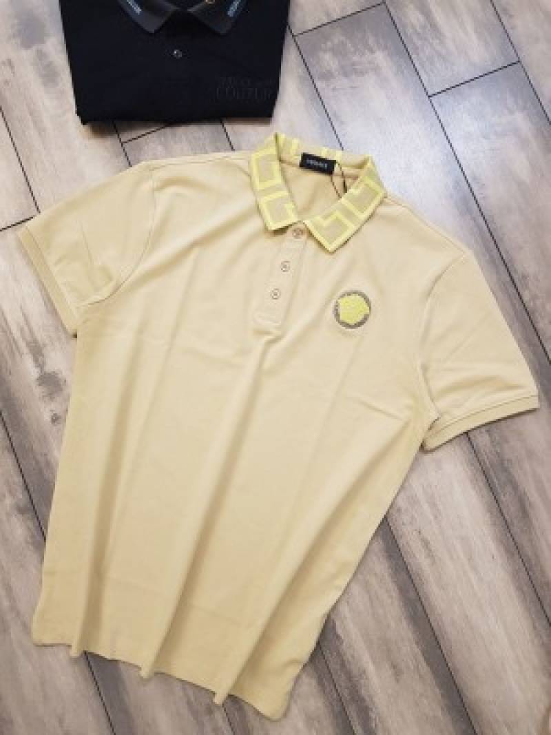 Versace Couture Beige Embroidery Logo Imported Polo T-Shirt (1169)
