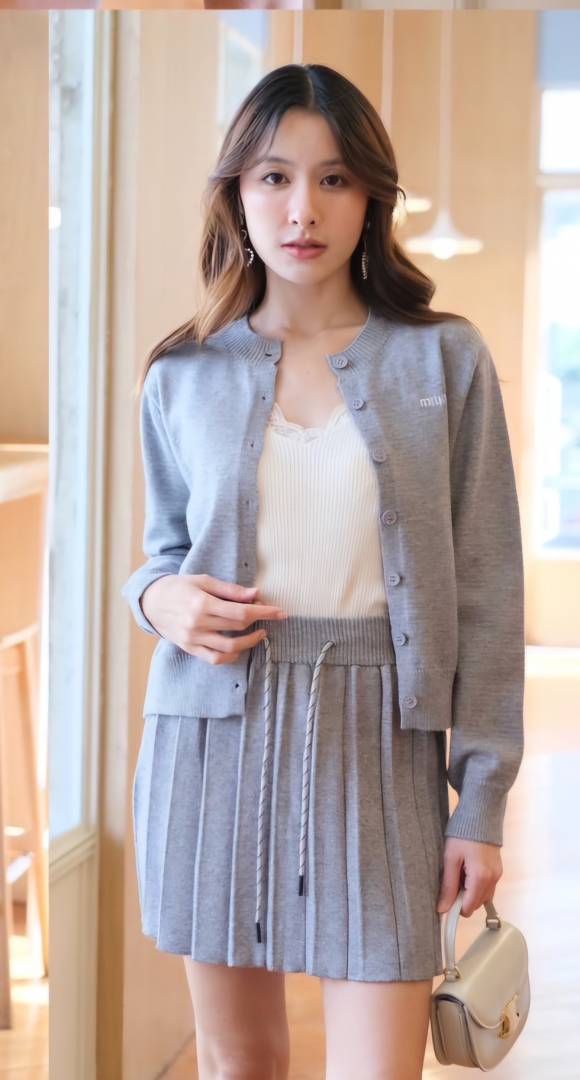Women Miu Pinker skirt And Top Grey SB137-GY